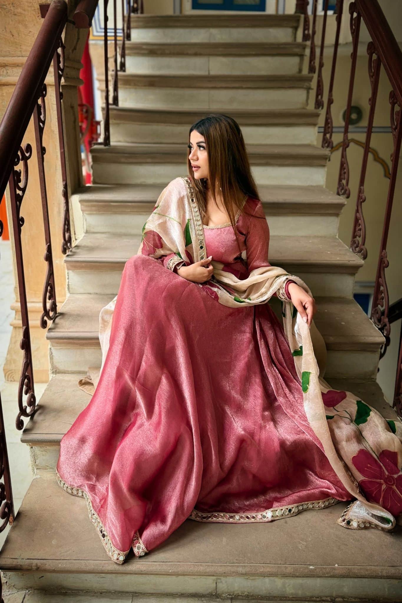 Roohi Pink Handpainted Dupatta Set